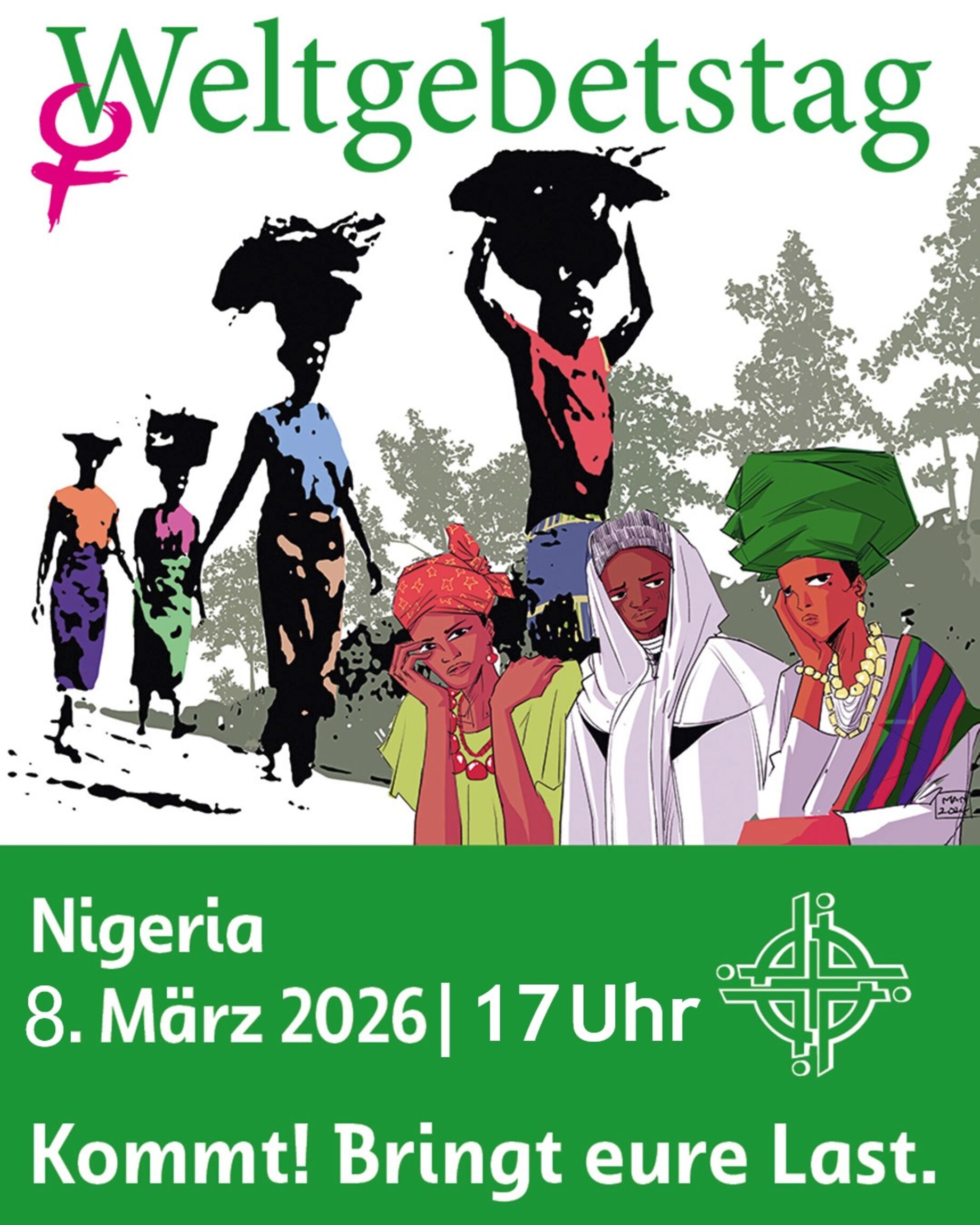 Am 8. März um 17 Uhr feiern wir in der Kirche in Wallhöfen den Weltgebetstag. In diesem Jahr haben Frauen aus Nigeria diesen Gottesdienst gestaltet, der in 150 Ländern weltweit gefeiert wird. Das Motto lautet: „Kommt! Bringt eure Last!“